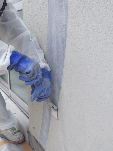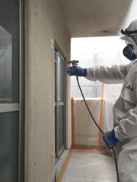 アスベスト含有外壁塗装材の除去事例写真 (レベル3対応)